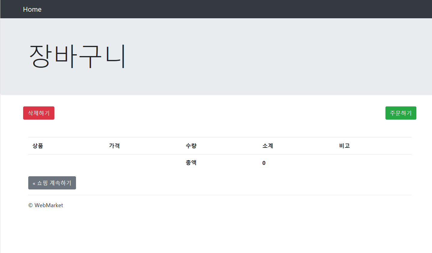 장바구니에 등록된 전체 상품 삭제 페이지 작성